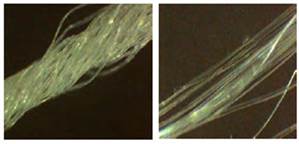 Рисунок 5. Микроскопическая идентификация нитей (слева направо): монофиламентная и мультифиламентная нити
