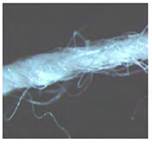 Рисунок 4. Микроскопическая идентификация нитей (слева направо): штапельная нить, скрученная комплексная (филаментная) нить и нескрученная комплексная (филаментная) нить