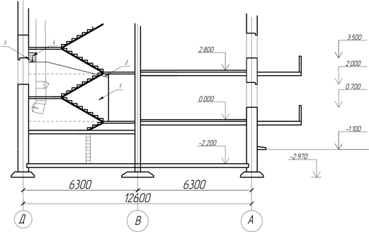 1 - лифтовая шахта; 2 - распределительное устройство (РУ).