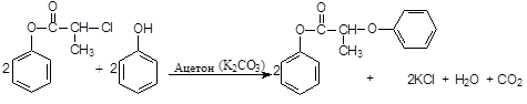 Вместе с тем отсутствуют сведения о реакционной способности фенил-2-хлорпропионата по отношению к фенолу и о возможности получения на его основе новых эфирных производных. Это определяет научную новизну и целесообразность изучения данного направления с позиций синтетической и прикладной органической химии.
