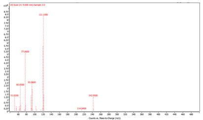Примечание: m/z (mass-to-charge ratio) — отношение массы к заряду иона; пик m/z = 242 указывает на наличие молекулы целевого соединения без фрагментации.