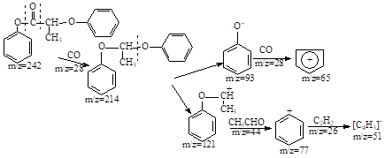 Рисунок 2. Схема образования фрагментных ионов фенил-2-феноксипропионата