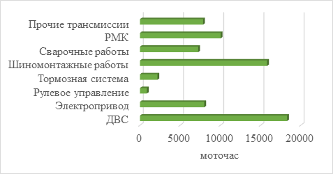 Рисунок 1. Анализ эксплуатационных отказов автосамосвалов по данным моточасов