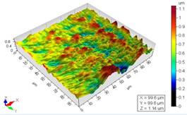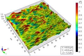 На рисунке 2 представлено АСМ-изображение полученного композиционного материала, согласно которому шероховатость составляет 100 нм в полиамиде-6 и 122 нм в композитном материале на основе ПА-6, полученном из фосфатов двухвалентных цинка.