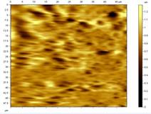 Получены результаты АСМ-анализа полимерного материала на основе полиамида-6 и полиэтилена с двойных конденсированных фосфатов двухвалентного цинка аммония. Анализ проводился на АСМ с использованием кремниевых кантилеверов с радиусом поворота 10 нм [18].