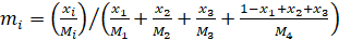 where: М1, М2, М3 and М4 -molecular masses of light volatile components and cottonseed oil, kg/kmol, х1, х2 and х3 -mass fractions (concentrations) of light volatile components in the oil, %