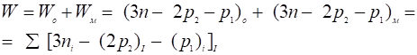 Для того чтобы показать за счет какого звена появляется дополнительная степень подвижности, представим формулу (1) в виде суммы степеней подвижности групп звеньев, составляющих механическую систему: