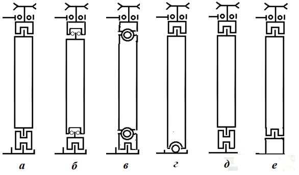 Рисунок 4. Принципиальные кинематические схемы структурно-свободных стержней с антиинерционными эффектами и различные способы соединения их частей.