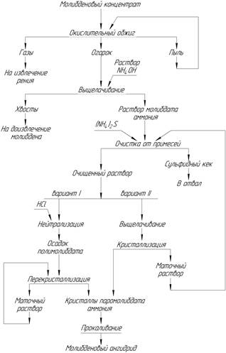 Рисунок 1. Технологическая схема переработки молибденовых концентратов аммиачном способом