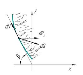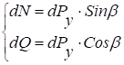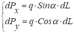 - составляющая силы давления волокон на поверхности угловой дуги с осью OY,