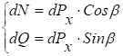 Определим проекции силы взаимодействия волокон на поверхность дугообразного колка на ось OXY. Здесь,