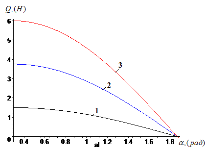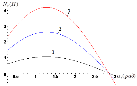 В уравнении (8) описывается состояние отделения примесей от него при движении волокон по поверхности наклонных колков. Анализ составляющих силы давления представлен на графиках с помощью программы Maple (рисунки 2.8, 2.9).