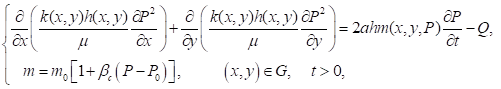 The mathematical model describing gas filtration in porous media with pressure-dependent porosity is represented as follows: