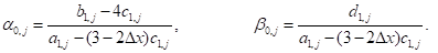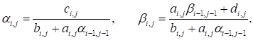 – initial values of the coefficients of the sweep method, determined from the boundary conditions of the left part of the discrete filtration region, that is, from the first equation of the system;