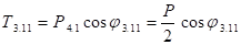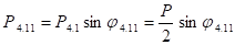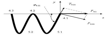 Теперь рассмотрим предельные условие в узле 4.1. На рис. 6 показана схема внешних и внутренних сил, которые действуют на середину узлов 4.1 и 3.1 третьего ряда нити.
