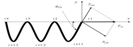 -го образца. На рис. 8 приведена схема действующих сил на нить, находящуюся в верхней части любого ряда узлов