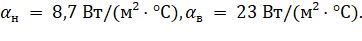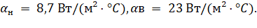 Значения коэффициентов теплоотдачи принимаются: