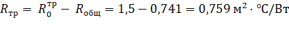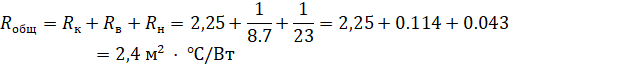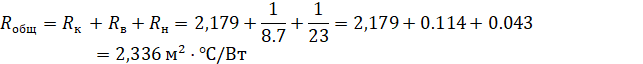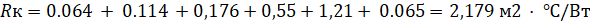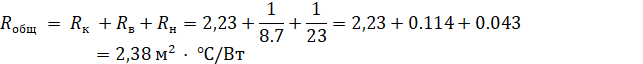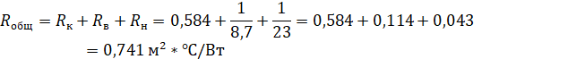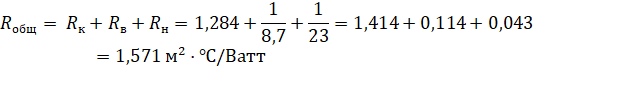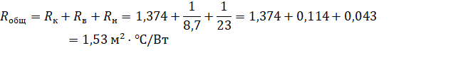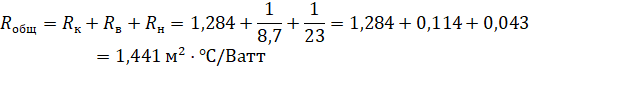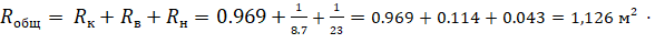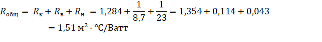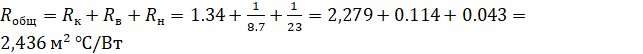 Используя данные из таблицы 1, определим общее сопротивление теплопередаче крыши: