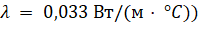 (Здесь 0,033 [15], стр. 36, вспененный пенополистирол, λ = 0,033 Вт/(м·°C)).