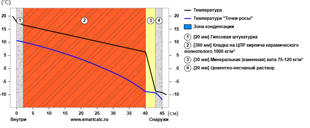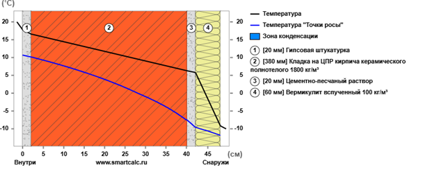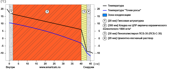Теплотехнический расчёт стены (при применении 1-го уровня тепловой защиты) должен быть следующим (на основании таблицы 2a [15]):