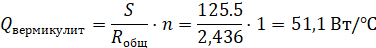 (Здесь 0,076 [15], стр. 36, вспученный вермикулит, λ = 0,076 Вт/(м·°C)). Требуется слой вспученного вермикулита толщиной 10,0 см.