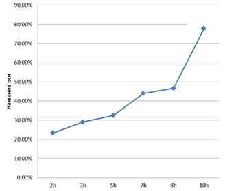 Как видно из графика, процесс образования гидрата оксида меди(II) происходит неравномерно во времени, а постепенно ускоряется. В частности, наиболее резкий рост наблюдается между 8 и 10 часами. Это свидетельствует о том, что реакция вступила в активную фазу и концентрация вещества приближается к насыщению.