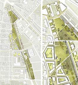 В результате открытого конкурса на реновацию района «Stadtraum Bayeris Bahnhof» в Лейпциге берлинское бюро Wessendorf заслужило право на итоговую разработку проекта. Согласно концепции ядром участка стал парк, который свяжет центр города с южным районом. Немаловажно и восстановление связи западных и восточных территорий, которые долгое время разделяли пустырь и железная дорога. Теперь, после прекращения эксплуатации участка железнодорожной ветки, власти города всерьез заинтересовались оживлением территории жилыми и рекреационными зонами. Концепция городского планирования основана на идее разделения городского пространства на отдельные парковые зоны и создания чередующихся дорожек вдоль железнодорожной линии, проложенных в том месте, где железнодорожная ветка становится почти естественным завершением восточной застройки и открытых пространств (рис. 4)