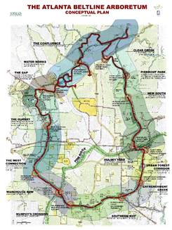 Рисунок 6. Атланта. Проект реновации территории кольцевой железной дороги «The Atlanta Beltline» и ее трансформации в эко-коридор. Схема территории объекта проектирования. Генеральный план