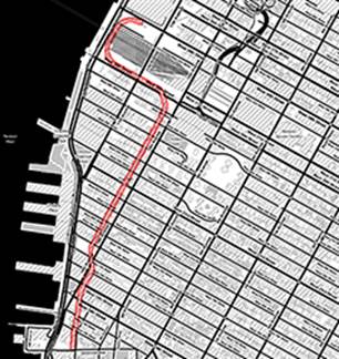 Рисунок 7. Нью-Йорк. Проект «The High Line». Схема территории объекта проектирования. Схема парка на территории Манхэттена