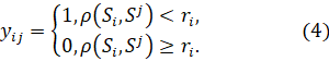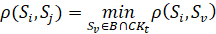 Обозначим через L(E0, ρ) – подмножество граничных объектов классов, определяемое на E0 по метрике ρ(x,y). Объекты Si,Sj∊Kt, t=1,...,l считаются связанными между собой (Si↔Sj), если {S∊L(E0,ρ)|ρ(S,Si)<ri и ρ(S,Sj)<rj}≠Æ, где ri(rj) – расстояние до ближайшего от Si(Sj) объекта из CKt ( CKt=Е0\Kt) по метрике ρ(x,y).