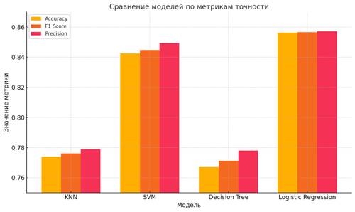 Рисунок 2. Точности моделей на выборке после удаления шумовых объектов