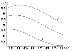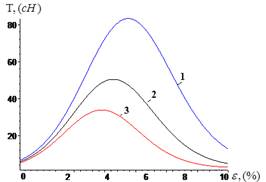 Ниже приведен анализ графиков уравнений (4) и (5), с использованием программы Maple в зависимости растяжимости уточной нити, на силы натяжения и относительной растяжимости