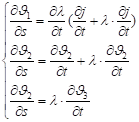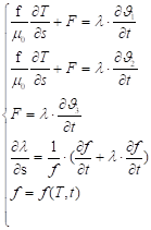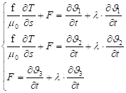 (11) из этого равенства имеем систему 5 дифференциальных уравнений движения, включающую 5 неизвестных функций f, λ, v1, v2, v3 переменных s и t растяжимой уточной нити. Когда растяжимая нить растягивается по закону Гука (f=1+αT), количество уравнений уменьшается, поскольку f можно исключить.