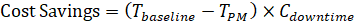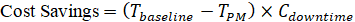 is the weighting factor assigned to each parameter based on its influence on system health. A Health Index closer to 1 indicates a healthy system, whereas values near the critical threshold of 0.6 signal the need for preventive maintenance. To evaluate the economic benefits of predictive maintenance, cost savings were estimated using the formula: