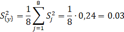 выборочная дисперсия результатов экспериментов для каждого j-го эксперимента [4; 5].