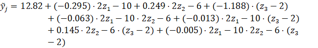 В результате окончательное уравнение регрессии в кодированных переменных имеет вид: