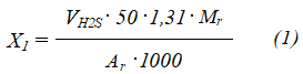 а) Количество сероводорода в растворе диэтаноламина Х1, г/дм3, рассчитывают по следующей формуле: