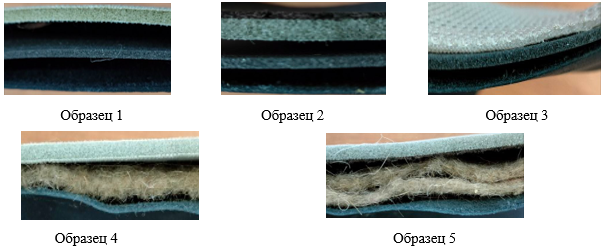 Рисунок 1. Образцы теплозащитных свойств комплектов материалов для обуви