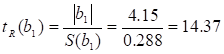 Для получения окончательной формы модели проверяется значимость коэффициентов с использованием формул критерия Стьюдента: