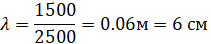 f - частота ультразвука (Гц), где f = 25 000 Гц (25 кГц) определена на основе имеющихся исследований. Если скорость волны в мякоти v = 1500 м/с: