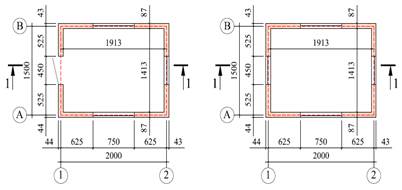 Since the dimensions of the transverse walls and the openings in them are the same, the stiffnesses in them are equal (table 1).