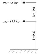 We determine the building masses by floor: m1 = Strength of walls of the first floor in the longitudinal and transverse directions: а) 1-2 axis in a transverse direction - V1= ? R=13 MPa; R=13×0,9=11,7 МPа; Еben= 3500 МPа. The displacement modulus equals: G=0,25 × Е = 0,25 × 3500 МПа = 785 МПа. |