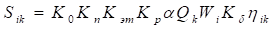 where: α - seismic coefficient, taken depending on the point of the territory; Qk - calculated weight of the layer (kN); Wi - function of the oscillation period;; Kδ - dynamic factor; η - coefficient of energy dissipation of the structure; K0, Kn, Ket, Kr - coefficients depending on the type of structure.