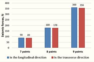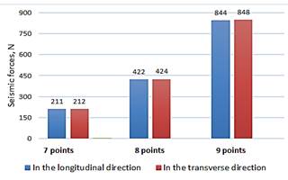 At the next stage, the seismic forces acting on the building were calculated for seismic zones of 7, 8, and 9 points using the following formula: