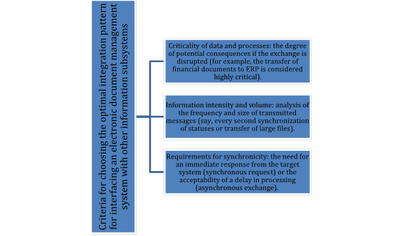 Figure 1. Criteria for choosing the optimal integration pattern for interfacing an electronic document management system with other information subsystems [4; 6; 7]