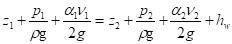 α1, α2 – коэффициенты кинетической энергии при движении воды в цистерне и по трубопроводу соответственно;