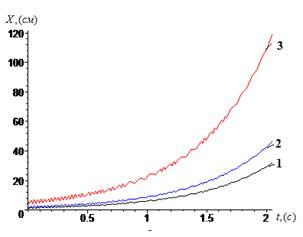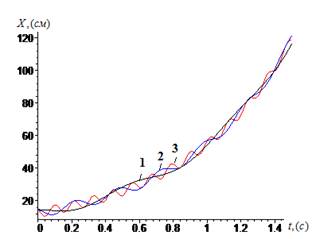 Уравнение (8) является выражением вибродвижения семян на колеблющейся сетчатой поверхности при отделении примесей от семян в зависимости от изменения эксцентриситета. Графический анализ этого уравнения выполнен с помощью программы Maple (рис. 3, 4).
