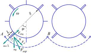 Рисунок 1. Схема воздействия барабана с резиновыми планками разной длины
