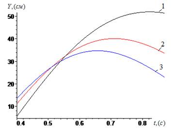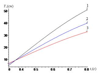 Рисунок 3. Графики зависимости от времени резиновых прокладок разной длины при очистке хлопка от мелких сорных приесей при различных значениях