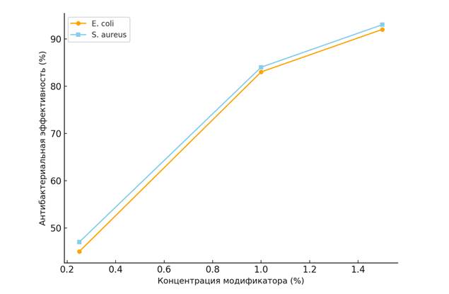 Рисунок 1. Влияние концентрации модификатора на антибактериальную эффективность тканей